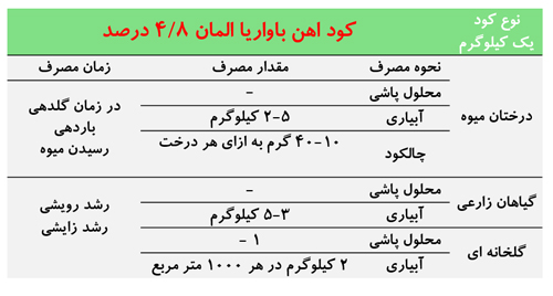 ♦ کود اهن باواریا المان اورتو-اورتو 4/8 درصد یکی از بهترین منابع برای تأمین آهن مورد نیاز گیاهان و جبران کمبود این عنصر غذایی در مزارع و باغات، بخصوص در باغات پسته می باشد.
