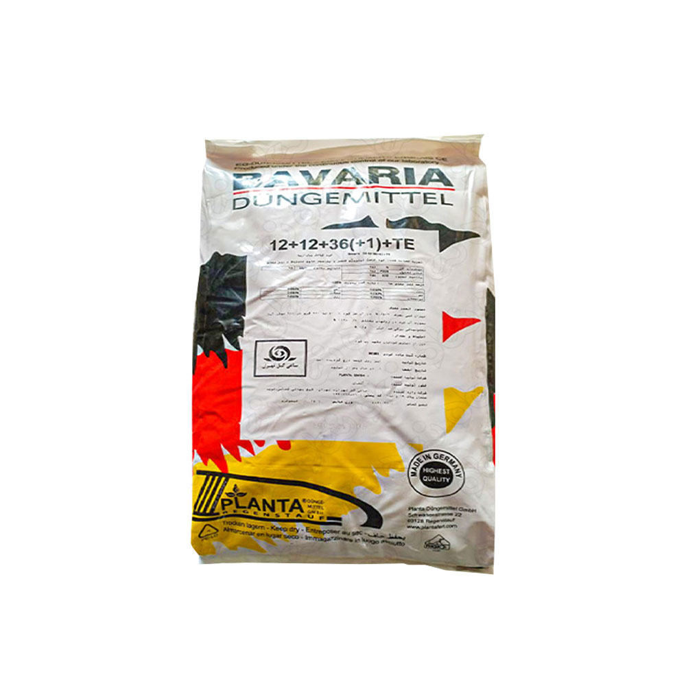 کود ۳۶-۱۲-۱۲ باواریا، از عناصر مختلفی که گیاهان برای رشد و نمو به آنها نیاز دارند، مانند نیتروژن، فسفر و پتاسیم تشکیل شده است. این نوع کود به صورت تخصصی در مرحله زایشی گیاه استفاده میشود و باعث افزایش رشد گیاهان در این مرحله خواهد شد. کود کامل ۳۶-۱۲-۱۲، به دلیل داشتن عناصر ریز مغذی، نیاز گیاهان را به طور کامل برطرف میکند. به این ترتیب سرعت رشد، کمیت و کیفیت محصول نهایی را تنظیم میکند و آن را بهبود میبخشد. علاوه بر این حاوی ترکیبات مختلفی از جمله آهن، مس، روی، مولیبدن، منگنز، بر و منیزیم میباشد. به همین دلیل کمبود عناصر مختلف را برطرف میکند و بنابراین استفاده از کودهای پایه را کاهش میدهد. این کود NPK فاقد عناصر سدیم، کلر و فلزات سنگین است. همچنین صد در صد انحلالپذیر است و به همین دلیل در مخزن کود رسوب نمیکند. این کود توسط شرکت آلمانی معتبر تولید شده و فرمولاسیون آن به صورت پودر است
