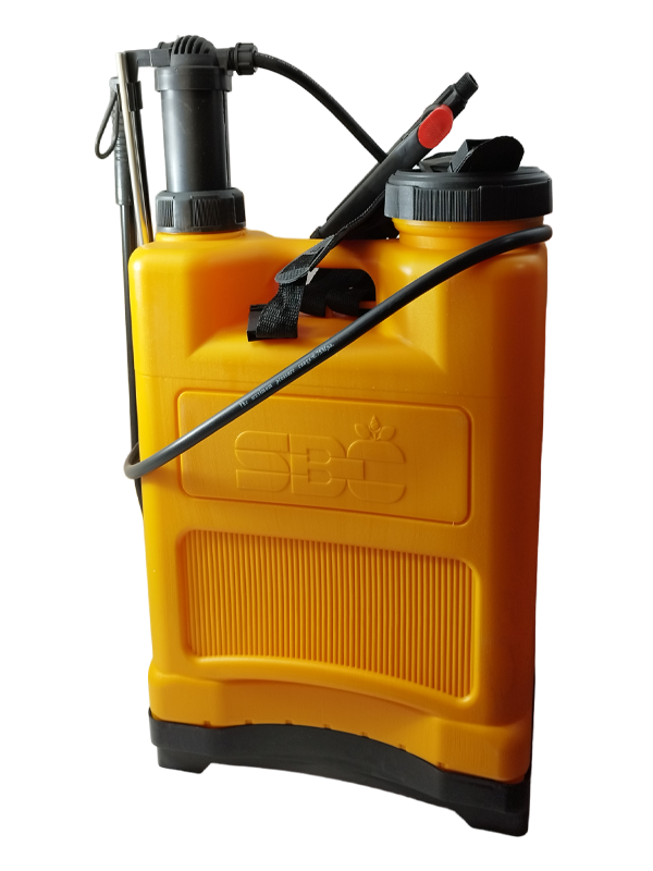 سمپاش اس بی سی 20 لیتری، از باکیفیت ترین سمپاش های موجود در ایران است.این مدل با دارا بودن طراحی ارگونومیک باعث حمل و نقل آسان و محافظت از کمر کاربر می نماید. روش کار این سمپاش قرار دادن محلول تحت فشار است. با این تفاوت که فشار لازم در مخزن ذخیره نمی شود بلکه همزمان با تلمبه زنی، این فشار در پشت نازل تأمین می گردد. همچنین از نوسان ناشی از تلمبه زنی نیز به وسیله محفظه فشار که در مجاورت مخزن تعبیه شده است جلوگیری می شود. برتری عمده این سمپاش نسبت به سمپاش پشتی تلمبه ای، فشار ثابت آن در طول سمپاشی است.به منظور تنظیم فشار داخل تانک، سعى کنید با ضربه هاى یکنواخت و پى درپى به تلمبه، فشار داخل سمپاش را بیشتر کنید. در هنگام تنظیم فشار، درزهاى مربوطه را بازرسى کنید تا از نشت نداشتن آنها اطمینان پیدا کنید. اهرم را در راستای بدنه حرکت دهید و از خم شدن یا آسیب دیدن اهرم جلوگیری کنید.